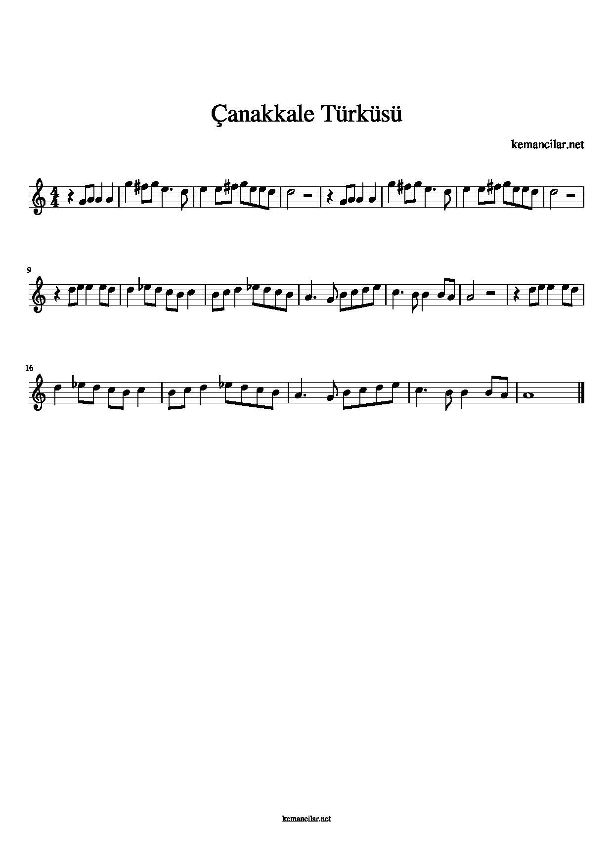 çanakkale türküsü notaları
